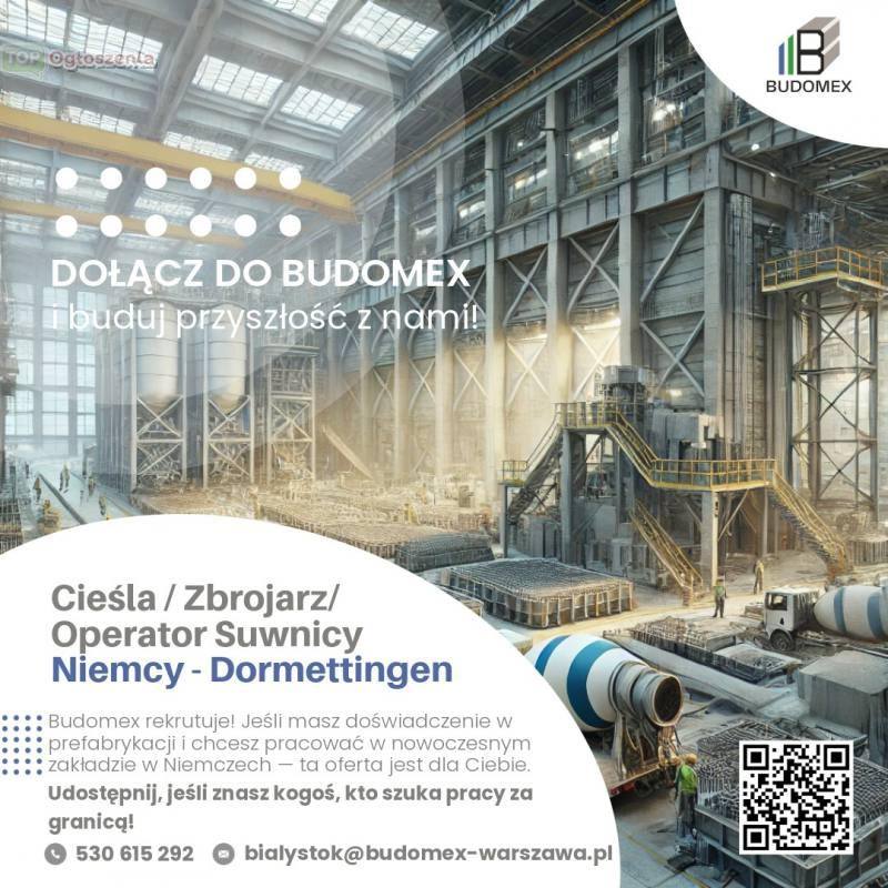 Budomex rekrutuje! Jeśli masz doświadczenie w prefabrykacji i chcesz pracować w nowoczesnym zakładzie w Niemczech — ta oferta jest dla Ciebie. Szukamy fachowców, którzy cenią sobie stabilność, dobre warunki i jasne zasady.